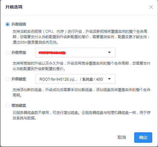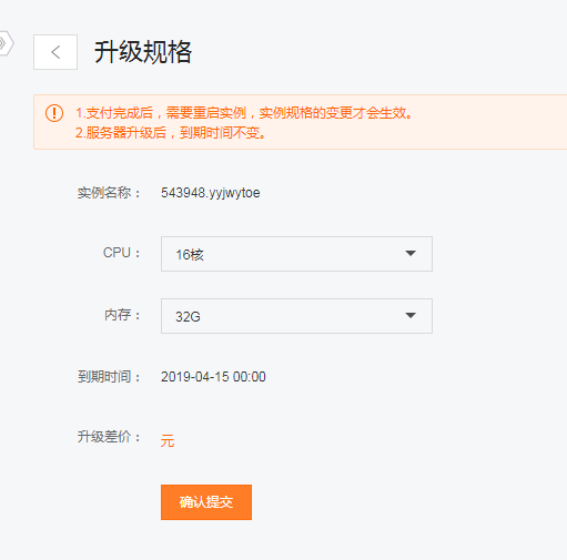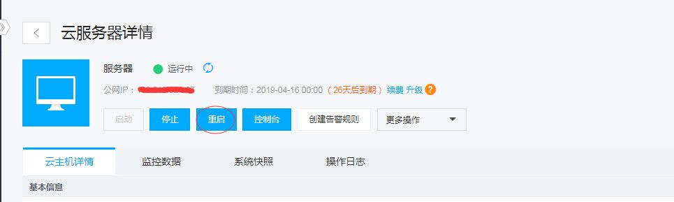 如選擇了“升級規(guī)格”需在控制臺點擊重啟:如圖